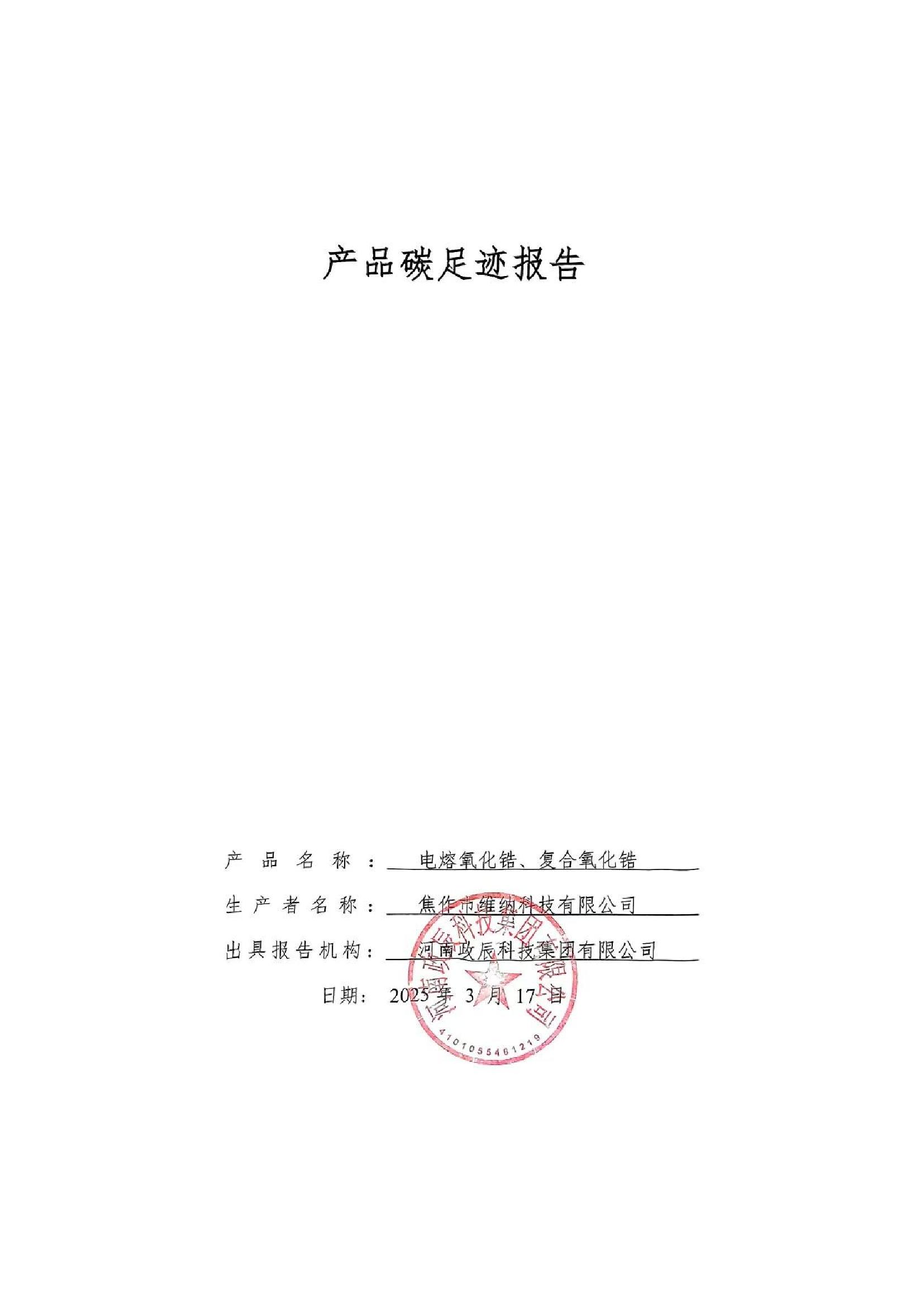 焦作市維納科技有限公司—2024年碳足跡核算報(bào)告